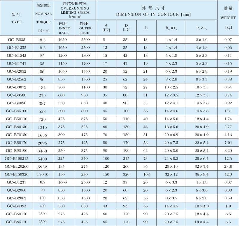 GC-B滾柱式單向離合器